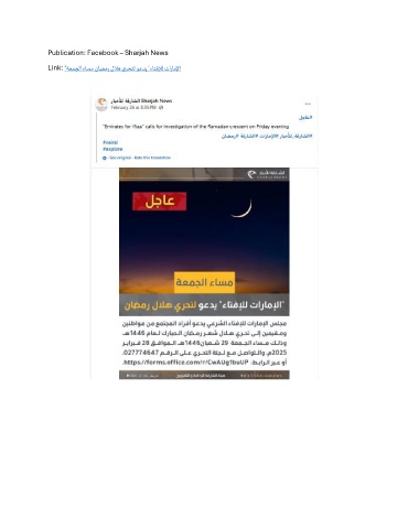 Publication: Facebook – Sharjah News Link: "ةعمجلا ءاسم ناضمر للاه يرحتل وعدي "ءاتفلإل تاراملإا