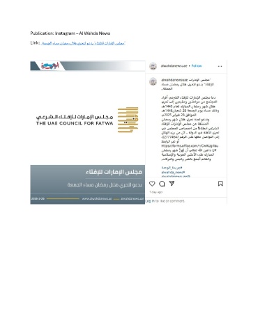 Publication: Instagram – Al Wahda News Link: ..ةعمجلا ءاسم ناضمر للاه يرحتل وعدي "ءاتفلإل تاراملإا سلجم"