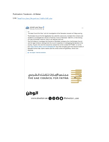 Publication: Facebook – Al Watan Link: "ةعمجلا ءاسم ناضمر للاه يرحتل وعدي "ءاتفلإل تاراملإا سلجم