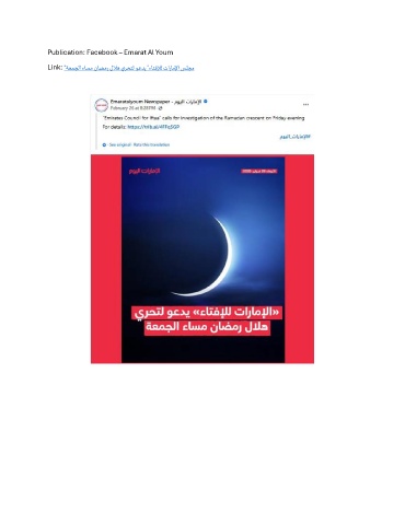 Publication: Facebook – Emarat Al Youm Link: "ةعمجلا ءاسم ناضمر للاه يرحتل وعدي "ءاتفلإل تاراملإا سلجم