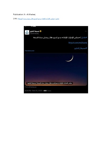Publication: X – Al Khaleej Link: #ةعمجلا ءاسم ناضمر للاه يرحتل وعدي »ءاتفلإل تاراملإا سلجم« | لجاع