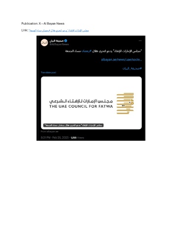 Publication: X – Al Bayan News Link: "ةعمجلا ءاسم ناضمر# للاه يرحتل وعدي "ءاتفلإل تاراملإا سلجم