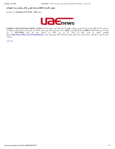 2/28/25, 1:43 PM UAE News - ﺔﻌﻣﺟﻟا ءﺎﺳﻣ نﺎﺿﻣر لﻼھ يرﺣﺗﻟ وﻋدﯾ «ءﺎﺗﻓﻺﻟ تارﺎﻣﻹا سﻠﺟﻣ» - تارﺎﻣﻹا رﺎﺑﺧأ