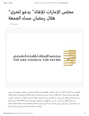 2/28/25, 1:43 PM "ﺔﻌﻣﺟﻟا ءﺎﺳﻣ نﺎﺿﻣر لﻼھ يرﺣﺗﻟ وﻋدﯾ "ءﺎﺗﻓﻺﻟ تارﺎﻣﻹا سﻠﺟﻣ - Nas News UAE