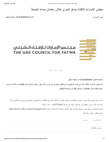 2/28/25, 1:41 PM ﺔﻌﻣﺟﻟا ءﺎﺳﻣ نﺎﺿﻣر لﻼھ يرﺣﺗﻟ وﻋدﯾ ءﺎﺗﻓﻺﻟ تارﺎﻣﻹا سﻠﺟﻣ