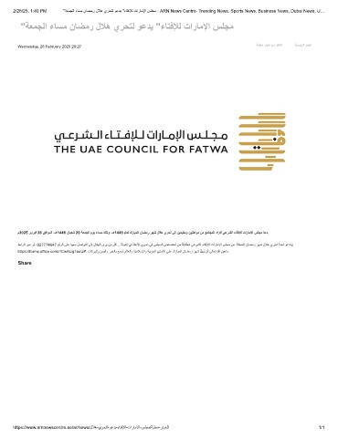 2/28/25, 1:40 PM "ﺔﻌﻣﺟﻟا ءﺎﺳﻣ نﺎﺿﻣر لﻼھ يرﺣﺗﻟ وﻋدﯾ "ءﺎﺗﻓﻺﻟ تارﺎﻣﻹا سﻠﺟﻣ - ARN News Centre- Trending News, Sports News, Business News, Dubai News, U…