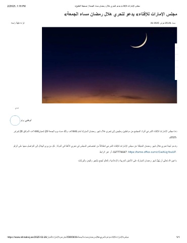 «ﺔﻌﻣﺟﻟا ءﺎﺳﻣ نﺎﺿﻣر لﻼھ يرﺣﺗﻟ وﻋدﯾ «ءﺎﺗﻓﻺﻟ تارﺎﻣﻹا سﻠﺟﻣ