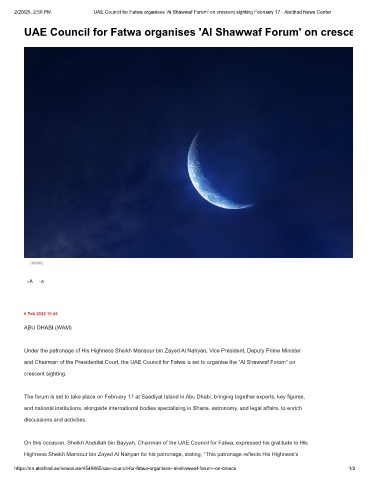 2/20/25, 2:56 PM UAE Council for Fatwa organises 'Al Shawwaf Forum' on crescent sighting February 17 - Aletihad News Center