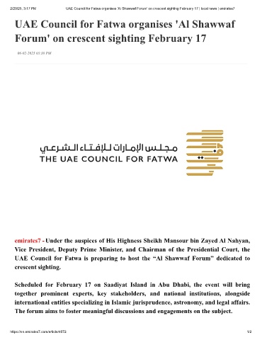 2/20/25, 3:17 PM UAE Council for Fatwa organises 'Al Shawwaf Forum' on crescent sighting February 17 | local news | emirates7