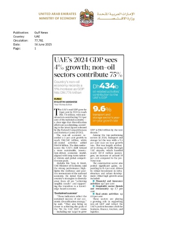 Publication: Gulf News Country: UAE Circulation: 77,781 Date: 16 June 2025 Page: 1