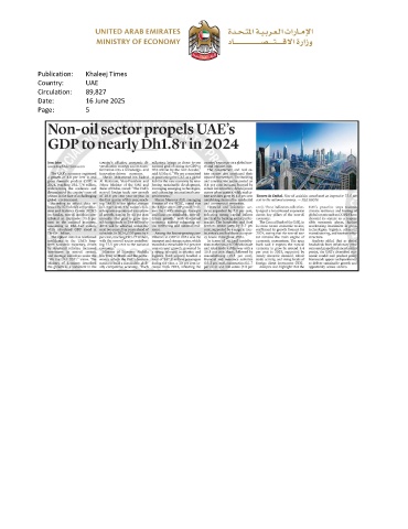 Publication: Khaleej Times Country: UAE Circulation: 89,827 Date: 16 June 2025 Page: 5