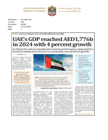 Publication: The Gulf Time Country: UAE Circulation: 60,000 Date: 16 June 2025 Page: 1