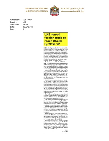 Publication: Gulf Today Country: UAE Circulation: 49,500 Date: 16 June 2025 Page: 1