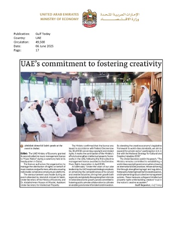 Publication: Gulf Today Country: UAE Circulation: 49,500 Date: 06 June 2025 Page: 17