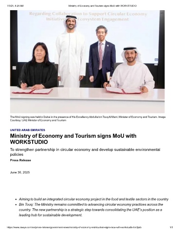 7/3/25, 8:28 AM Ministry of Economy and Tourism signs MoU with WORKSTUDIO