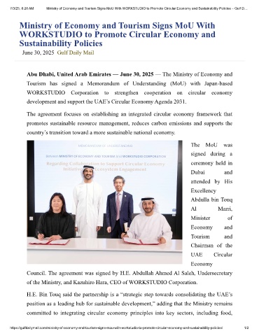 https://gulfdailymail.com/ministry-of-economy-and-tourism-signs-mou-with-workstudio-to-promote-circular-economy-and-sustainability-policies/ 1/2