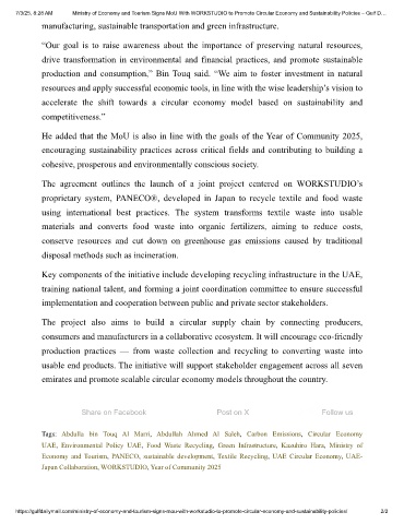 https://gulfdailymail.com/ministry-of-economy-and-tourism-signs-mou-with-workstudio-to-promote-circular-economy-and-sustainability-policies/ 2/2