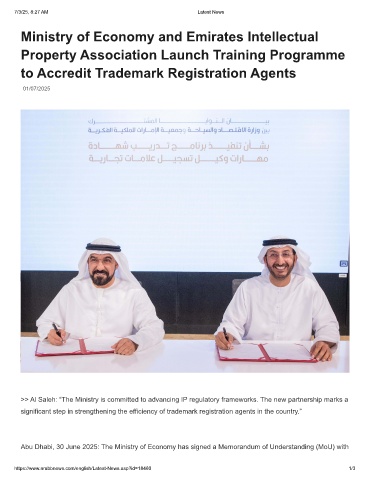 >> Al Saleh: “The Ministry is committed to advancing IP regulatory frameworks. The new partnership marks a