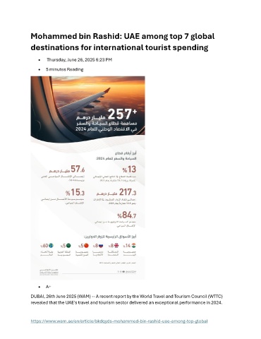 DUBAI, 26th June 2025 (WAM) -- A recent report by the World Travel and Tourism Council (WTTC)