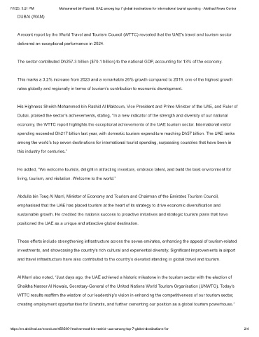 7/1/25, 3:21 PM Mohammed bin Rashid: UAE among top 7 global destinations for international tourist spending - Aletihad News Center