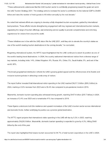 7/1/25, 3:21 PM Mohammed bin Rashid: UAE among top 7 global destinations for international tourist spending - Aletihad News Center
