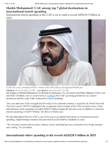 7/1/25, 3:21 PM Sheikh Mohammed: UAE among top 7 global destinations in international tourist spending