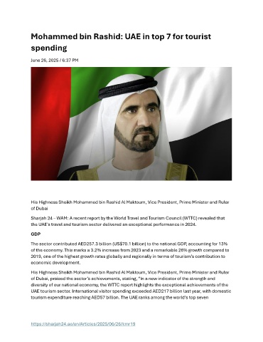Mohammed bin Rashid: UAE in top 7 for tourist