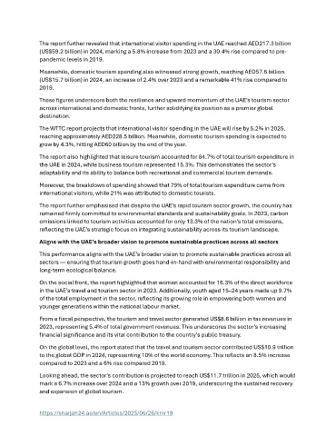 The WTTC report projects that international visitor spending in the UAE will rise by 5.2% in 2025,