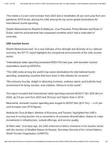 https://www.arabianbusiness.com/industries/travel-hospitality/uae-tourism-hits-record-70bn-in-2024-ranks-among-worlds-top-7-for-visitor-spending 2/4
