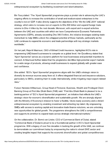 https://www.gulftoday.ae/business/2025/06/25/etihad-credit-insurance-announces-dhs174m-funding-raised-for-smes 2/3