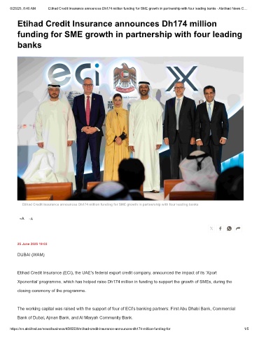 6/26/25, 8:40 AM Etihad Credit Insurance announces Dh174 million funding for SME growth in partnership with four leading banks - Aletihad News C…