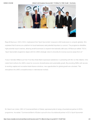programme. He stated: "Commercial Bank of Dubai is proud to be a foundational partner in ECI’s Xport Xponential