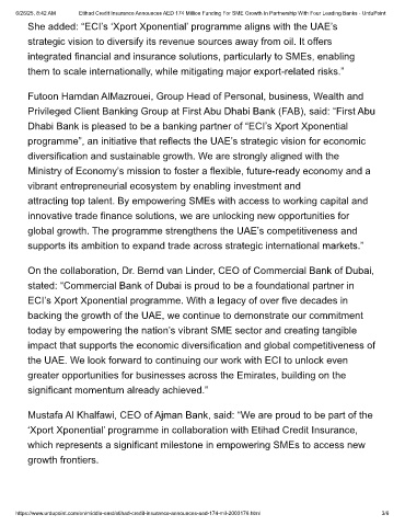 6/26/25, 8:42 AM Etihad Credit Insurance Announces AED 174 Million Funding For SME Growth In Partnership With Four Leading Banks - UrduPoint