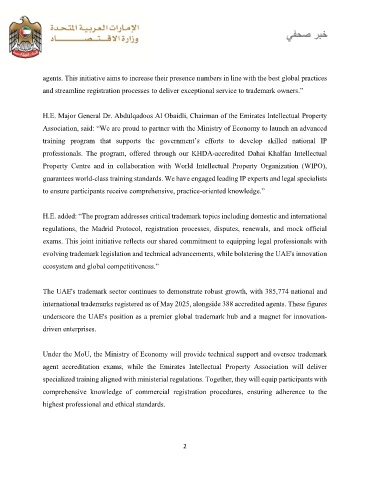 agent accreditation exams, while the Emirates Intellectual Property Association will deliver