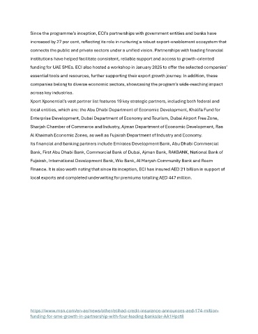 funding for UAE SMEs. ECI also hosted a workshop in January 2025 to offer the selected companies’