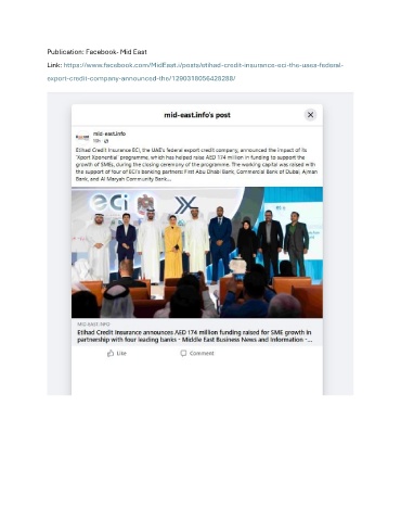 Publication: Facebook- Mid East Link: https://www.facebook.com/MidEast.i/posts/etihad-credit-insurance-eci-the-uaes-federal- export-credit-company-announced-the/1290318056428288/