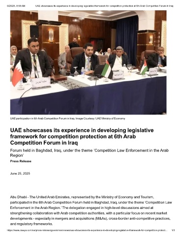 6/26/25, 8:58 AM UAE showcases its experience in developing legislative framework for competition protection at 6th Arab Competition Forum in Iraq