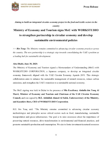 H.E. bin Touq said: “The Ministry remains committed to advancing circular economy