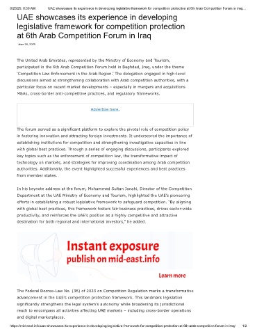 https://mid-east.info/uae-showcases-its-experience-in-developing-legislative-framework-for-competition-protection-at-6th-arab-competition-forum-in-iraq/ 1/2