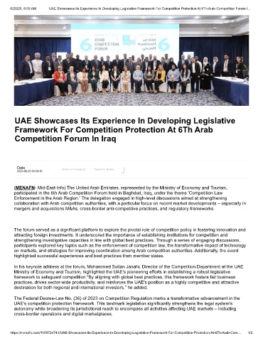 https://menafn.com/1109724741/UAE-Showcases-Its-Experience-In-Developing-Legislative-Framework-For-Competition-Protection-At-6Th-Arab-Com… 1/2
