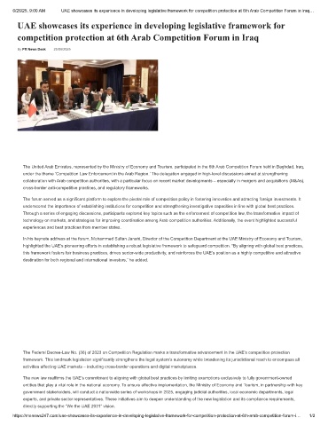 6/26/25, 9:00 AM UAE showcases its experience in developing legislative framework for competition protection at 6th Arab Competition Forum in Iraq…