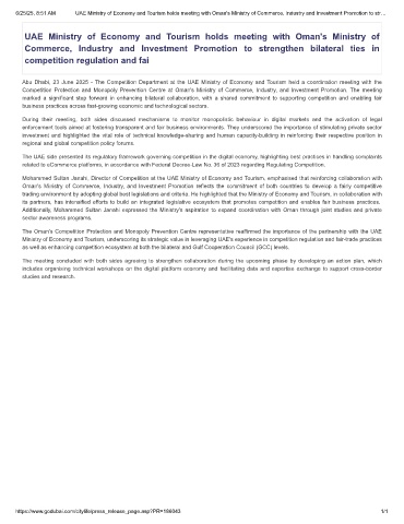 6/25/25, 8:51 AM UAE Ministry of Economy and Tourism holds meeting with Oman's Ministry of Commerce, Industry and Investment Promotion to str…