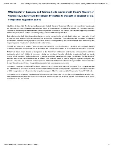 6/25/25, 8:51 AM UAE Ministry of Economy and Tourism holds meeting with Oman's Ministry of Commerce, Industry and Investment Promotion to str…