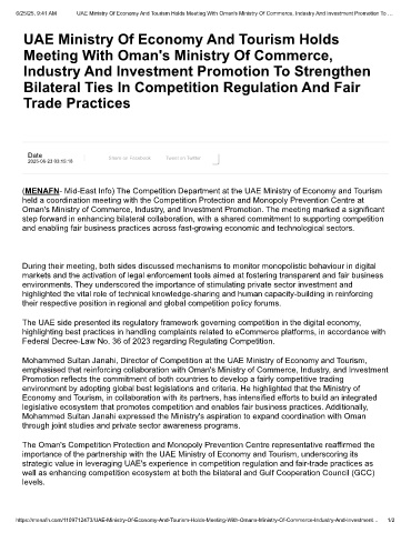 https://menafn.com/1109712473/UAE-Ministry-Of-Economy-And-Tourism-Holds-Meeting-With-Omans-Ministry-Of-Commerce-Industry-And-Investment… 1/2