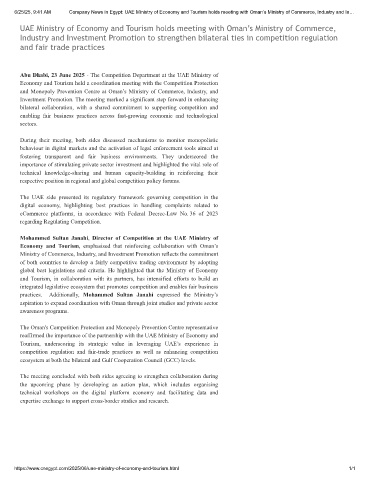 6/25/25, 9:41 AM Company News in Egypt: UAE Ministry of Economy and Tourism holds meeting with Oman’s Ministry of Commerce, Industry and In…