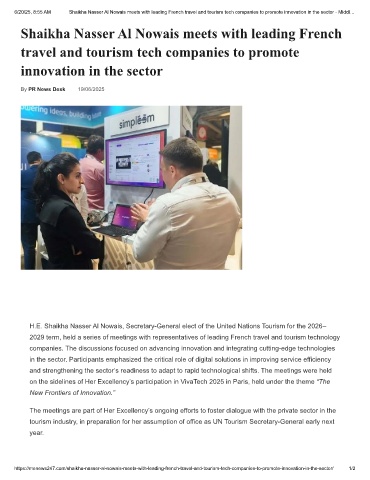 6/20/25, 8:55 AM Shaikha Nasser Al Nowais meets with leading French travel and tourism tech companies to promote innovation in the sector - Middl…