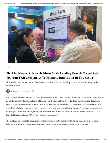 6/20/25, 8:56 AM Shaikha Nasser Al Nowais meets with leading French travel and tourism tech companies to promote innovation in the sector | Web …