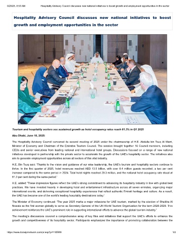 6/20/25, 8:56 AM Hospitality Advisory Council discusses new national initiatives to boost growth and employment opportunities in the sector