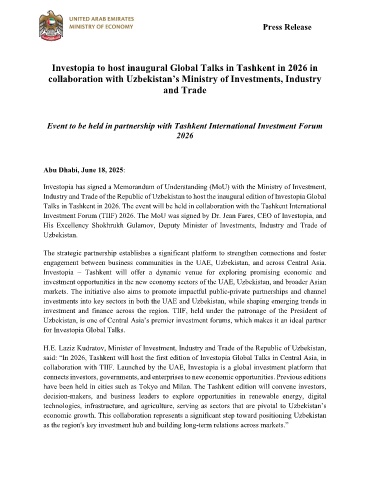 collaboration with TIIF. Launched by the UAE, Investopia is a global investment platform that
