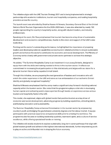 He added, “The Summer Hospitality Camp is an investment in our young Emiratis, designed to
